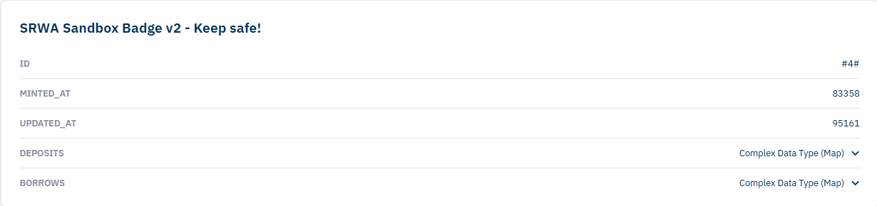 <figure><img src="https://content.gitbook.com/content/trVSLp6MISq8KhCNe8Nf/blobs/aru4JKKwhzP6NhtxHg7Y/Screenshot%202025-04-30%20095330.png" alt=""><figcaption><p>Example of the SRWA User Badge borrows</p></figcaption></figure>