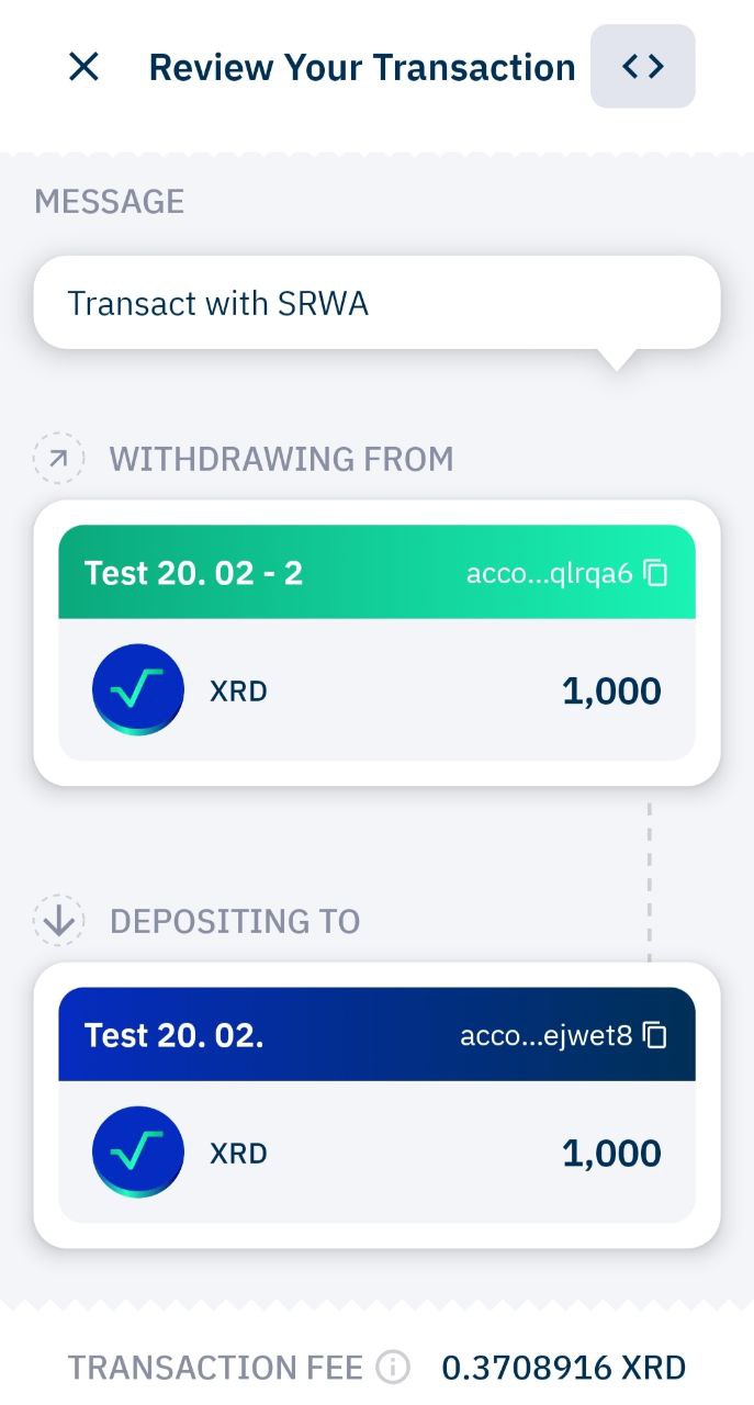 Upon opening the Radix Wallet app, User can see transaction details, review it and sign it to be committed.